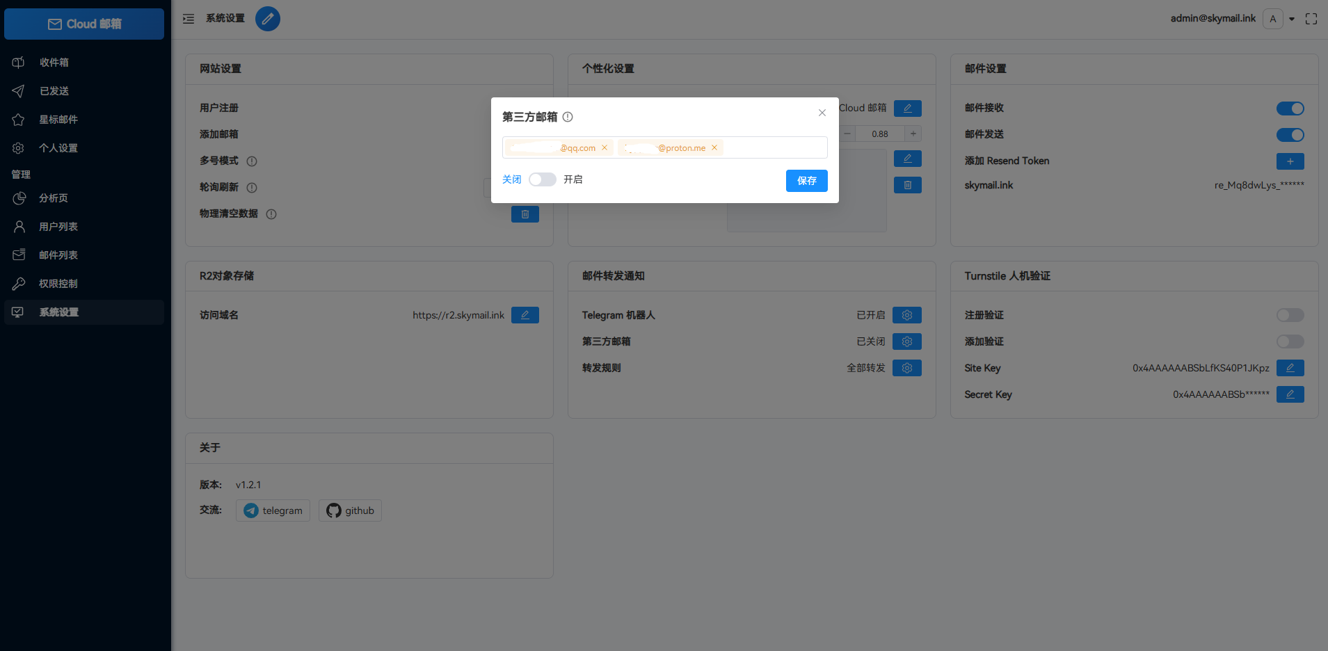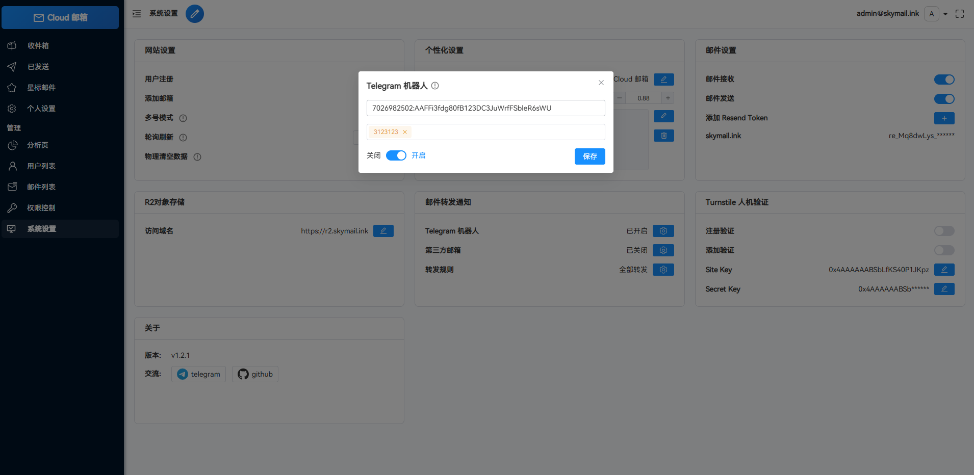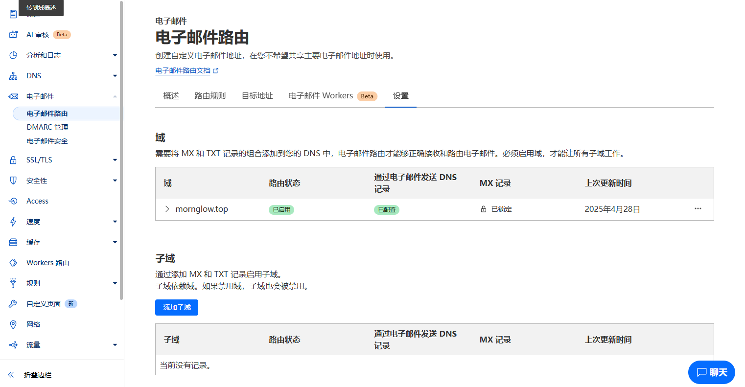 | domain | ["你的域名"], 示例:["mornglow.top"] | JSON | 网站会使用这个域名作为邮箱域名 |