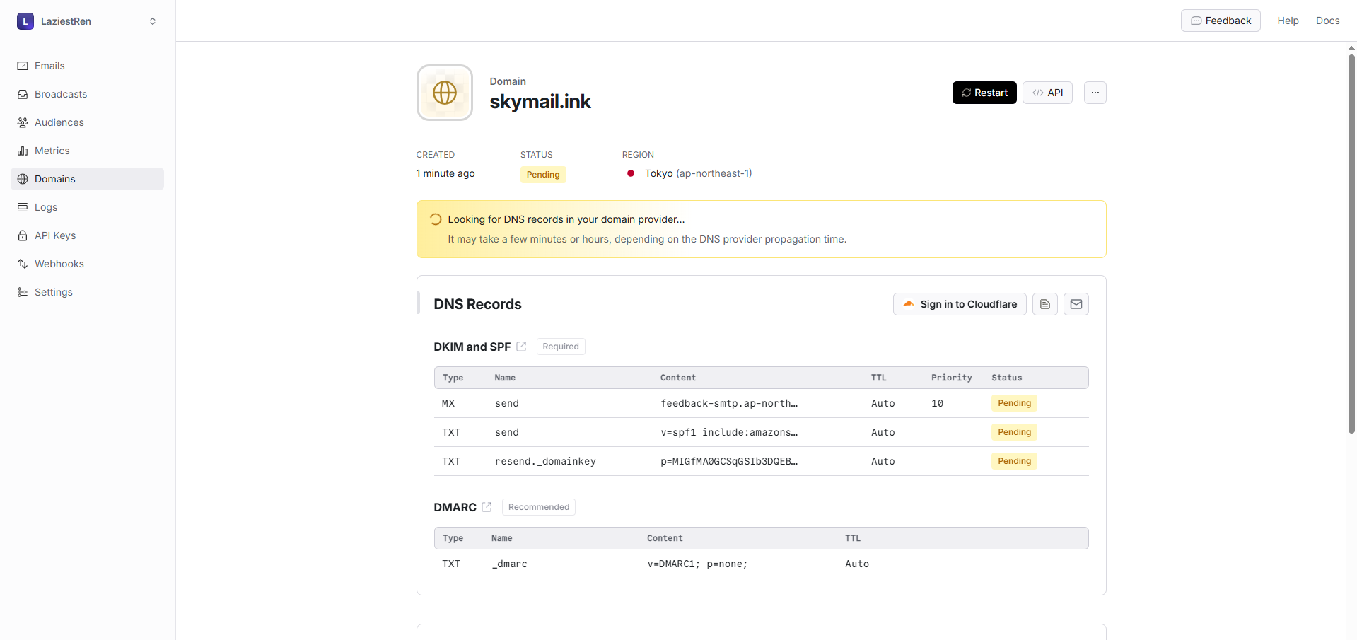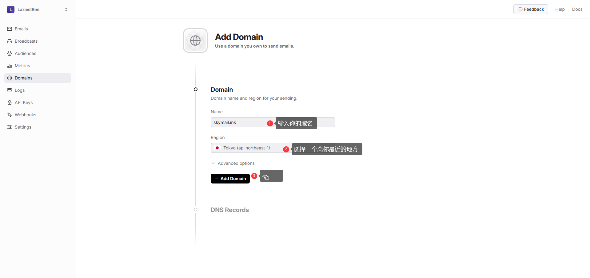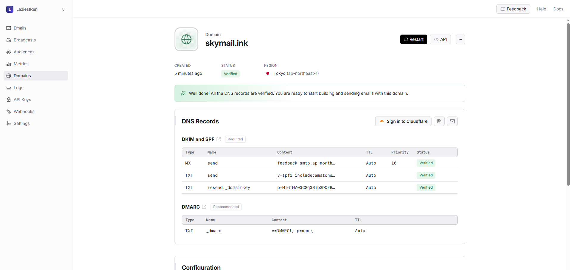 | domain | ["你的域名"], 示例:["mornglow.top"] | JSON | 网站会使用这个域名作为邮箱域名 |