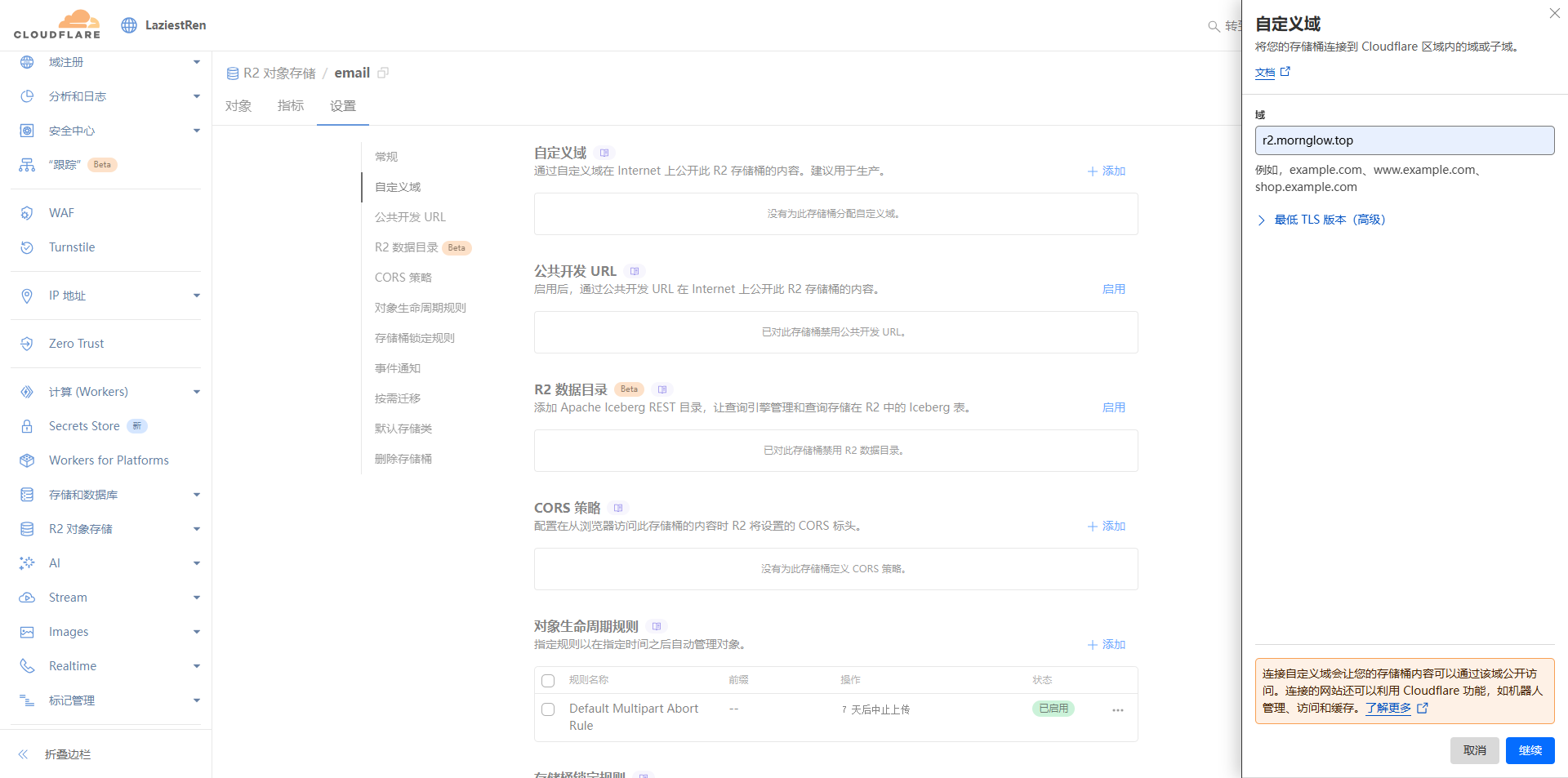 回到上一级菜单,找到r2对象存储,创建存储桶