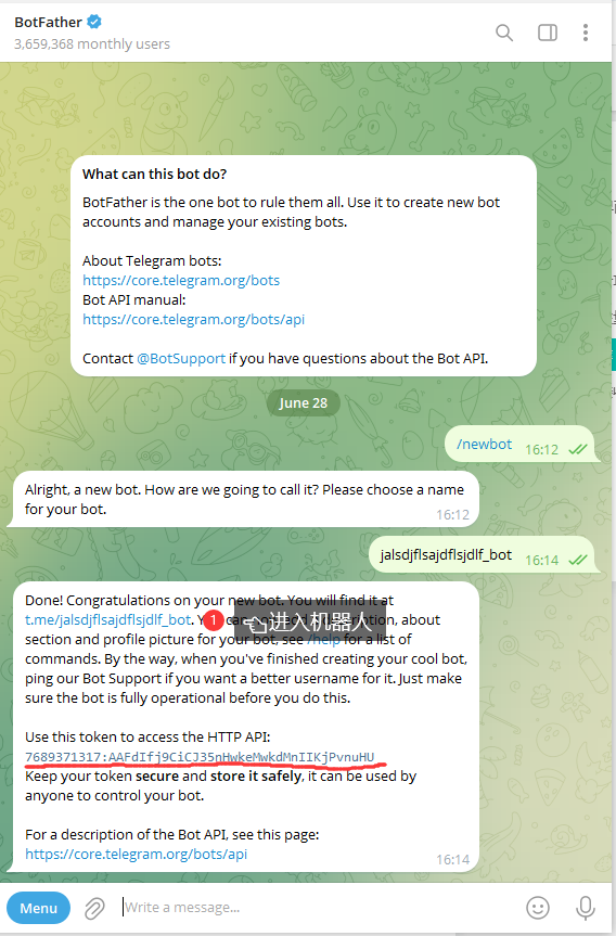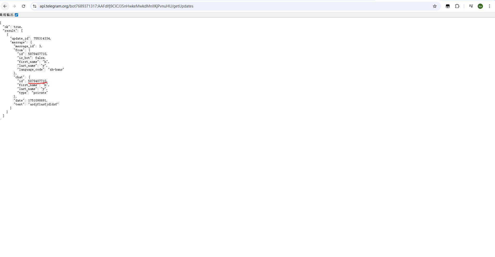 浏览器输入 https://api.telegram.org/bot你的机器TOKEN/getUpdates 获取chat_id